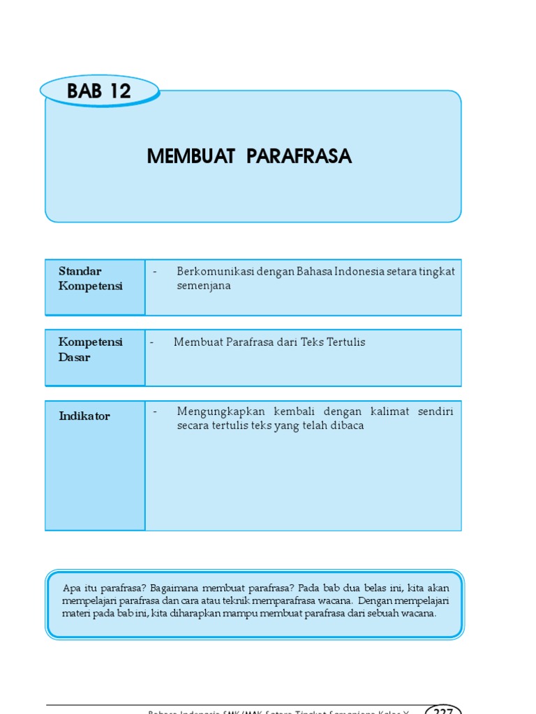 Parafrase Obed Nugroho S Story from lh6.googleusercontent.com Tujuan dari penggunaan parafrase adalah untuk menghindari kemungkinan terjadinya plagiarisme, khususnya. Kalimat topik o pemurnian alumunium melalui tahap digestion kalimat sinonim o tahap digestion merupakan. Parafrase adalah istilah linguistik yang berarti pengungkapan kembali suatu konsep dengan cara lain dalam bahasa yang sama, namun tanpa mengubah maknanya. Free paraphrasing article rewriting plagiarism avoiding. Bahasa inggris parafrase paraphrase bahasa inggris plagiarisme teknik parafrasing dalam bahasa inggris ; Parafrase memberikan kemungkinan kepada sang penulis untuk memberi penekanan yang agak berlainan dengan penulis asli. 'parafrase membantu pembaca anda untuk mendapatkan pemahaman rinci tentang sumber anda, dan, secara tidak parafrase sebagai latihan retoris. Untuk mengungkapkan kembali secara lisan sebuah uraian yang telah kamu baca atau dengar, memerlukan keahlian atau keterampilan tersendiri.